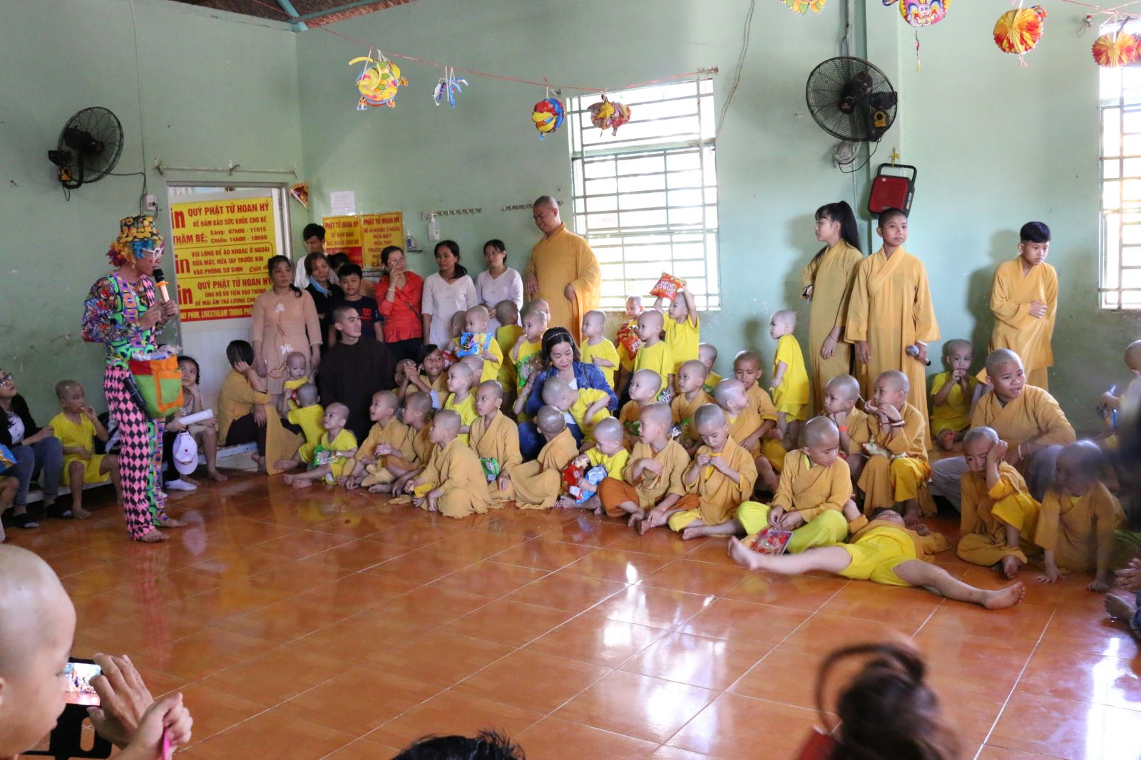 Đoàn chúng tôi ngoài mang những nhu yếu phẩm cần thiết và tiền mặt để gửi tặng chùa, còn chuẩn bị thêm các chương trình ảo thuật, chú hề bong bóng, các trò chơi hoạt náo tặng quà, và một khu tô tượng, làm tranh cát để các bé có thể thoải mái chơi đùa. Nhìn các con nhỏ cười đùa thoải mái, tập trung tô tô vẽ vẽ, chốc chốc lại ngước đôi mắt tròn hoe lên hỏi “mẹ ơi, cha ơi con tô đẹp không?”, rồi lại tiếp tục cười đùa, rồi lại cãi nhau chí chóe để giành nhau bức tranh, con tượng mình thích, nhưng chỉ cần nghe thầy hoặc các anh chị lớn hơn nhắc nhở là lại ngoan như những chú cún con.